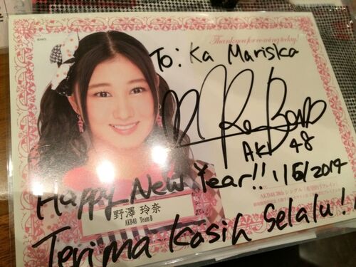 Foto:Autograph Rena untuk teman di Indonesia yang suka Rena2015, JAN 5th.Saya dayang Yokohama untuk ikut HS AKB48.Saya punya ticket untuk Rena Sesi7 dan SKE48 Takayanagi Akane(churi) sesi5 . Tapi saya ada kerjar dan datang hanya sesi7.Jam7…